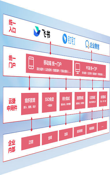 对协作平台提供支持服务,,支持企业应用与协作平台对接,,,包含组织同步、、、、消息集成、、、、待办集成等。。。。支持目前主流的协作平台:钉钉、、、企微和飞书。。。